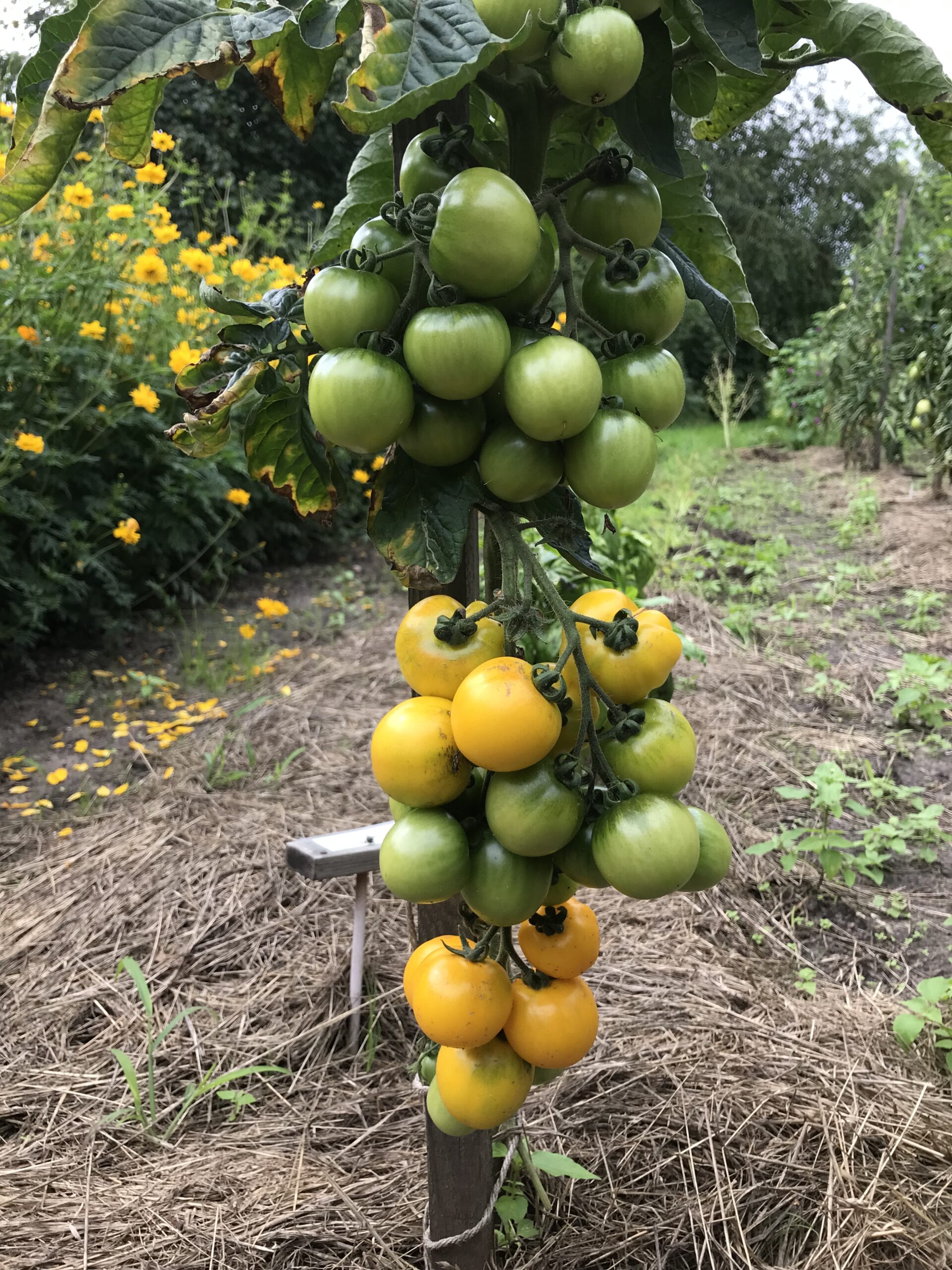 Pflanzen: Mitte Mai bis Juni, 100 x 60 cm an Stab oder Schnur eintriebig ziehen.