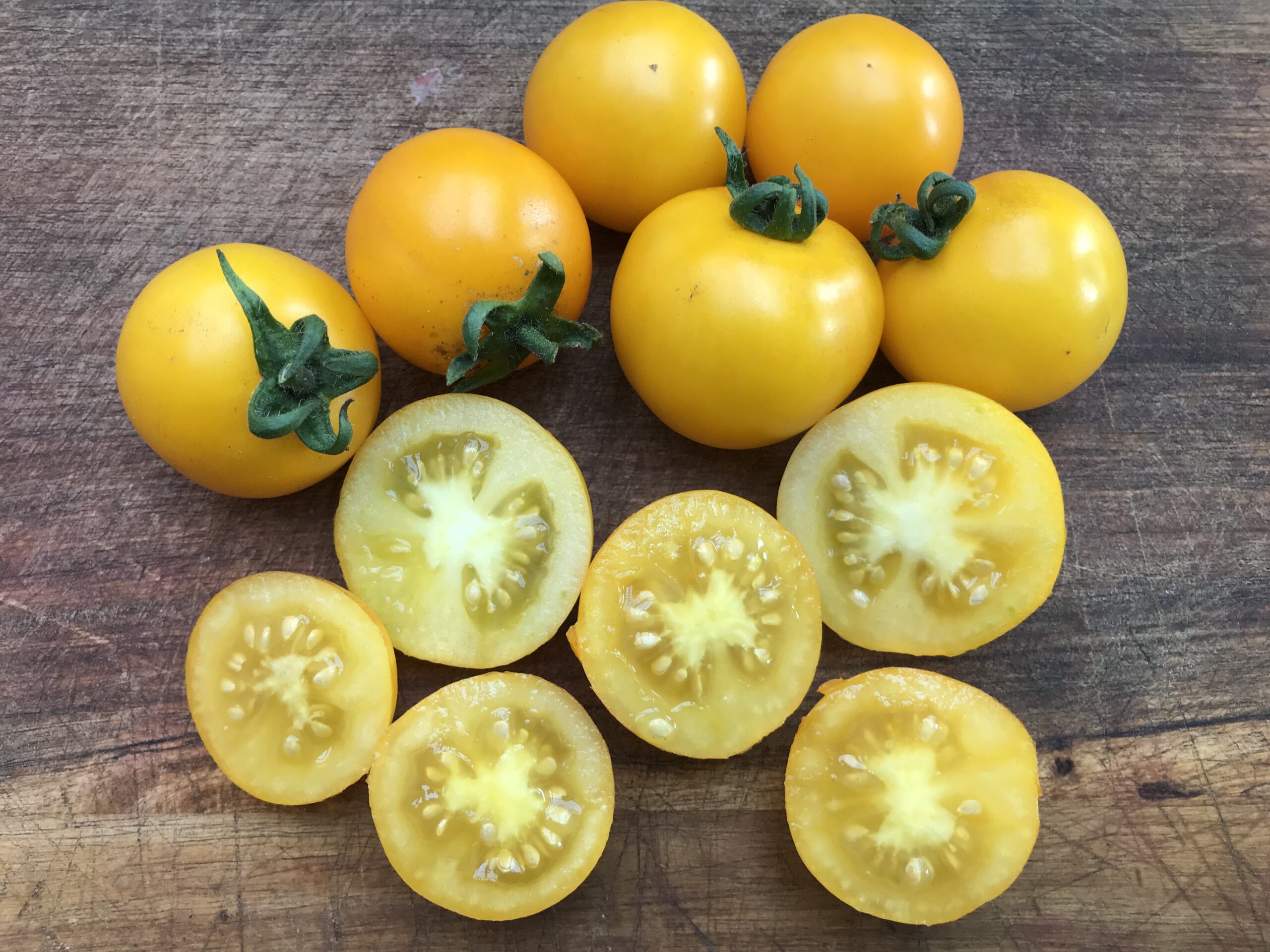 Einen angenehmen, fruchtigen Geschmack haben die mittelgroßen gelb / orangen Früchte. Für Balkon und Freiland geeignet.